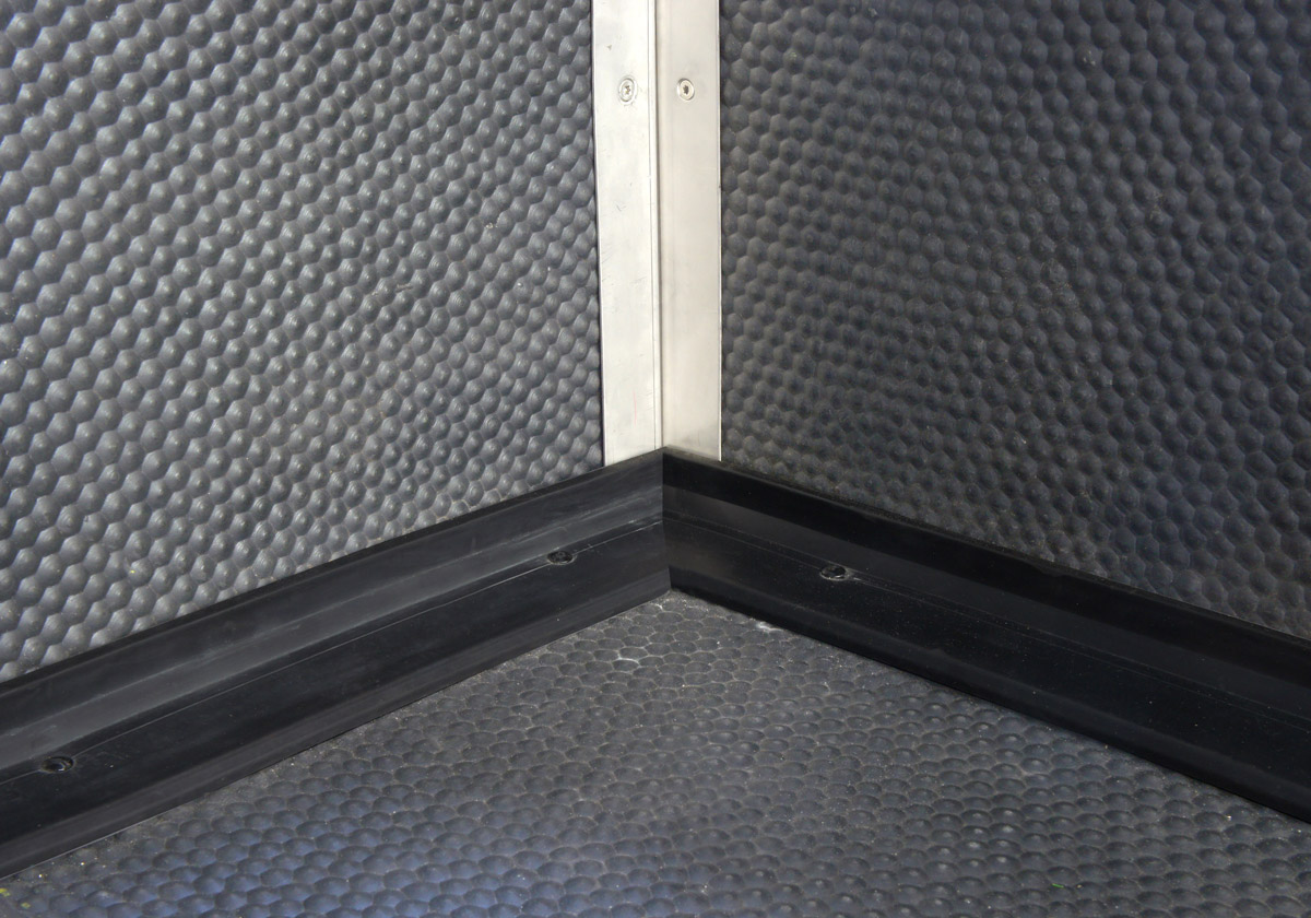 Thermo Grande, die Gummimatte für Pferdeboxen, wird auf Mass konfektioniert. Als optimalen und sauberen Wandabschluss empfehlen wir die speziellen Gummiwinkel. Damit gelangt kein grober Schmutz unter die Matten.